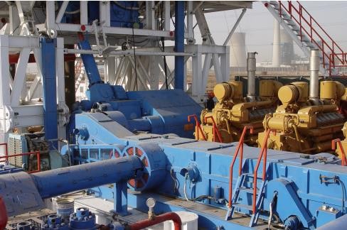 ◆ 機械鉆機是柴油機驅動(dòng)用鏈條箱并車(chē)后驅動(dòng)絞車(chē)和泥漿泵,通過(guò)爬臺萬(wàn)向軸驅動(dòng)轉盤(pán)鏈條箱帶動(dòng)轉盤(pán)。