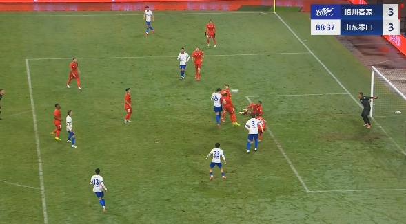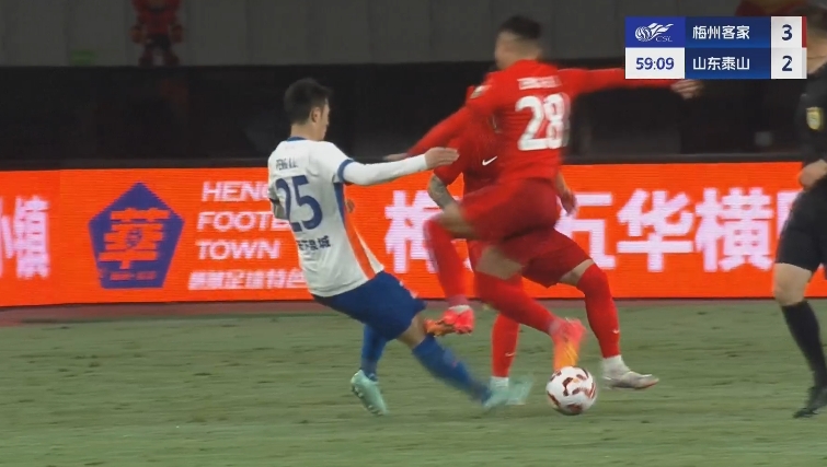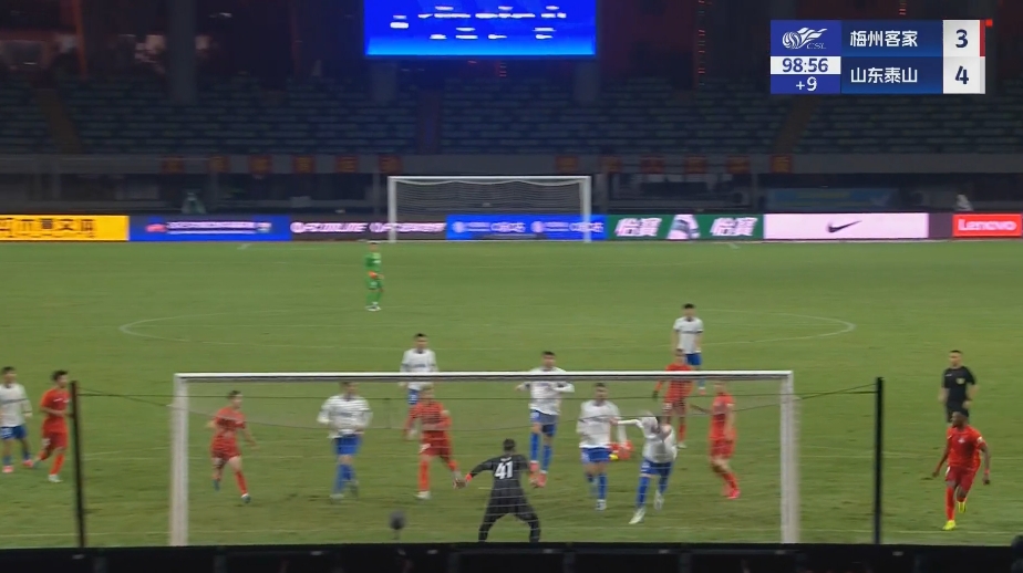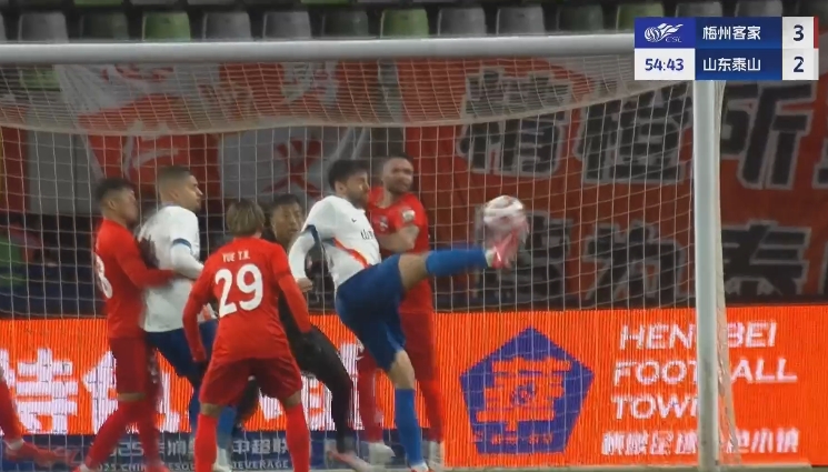 03月29日訊 泰山vs梅州第55分鐘,泰山角球機會(huì ),澤卡倚人勾射破門(mén),泰山再扳一球2-3落后梅州!