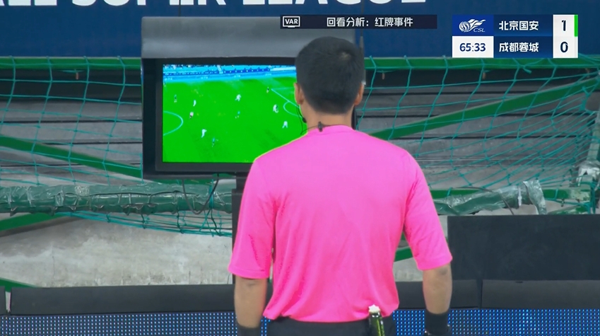 03月29日訊 中超第3輪,北京國安vs成都蓉城。比賽第66分鐘,恩加德烏后場(chǎng)拿球被搶斷,無(wú)奈放倒費利佩犯規,主裁馬寧起初出示黃牌,隨后VAR介入,馬寧去場(chǎng)邊查看后改判直紅!場(chǎng)上比分國安1-0蓉城。