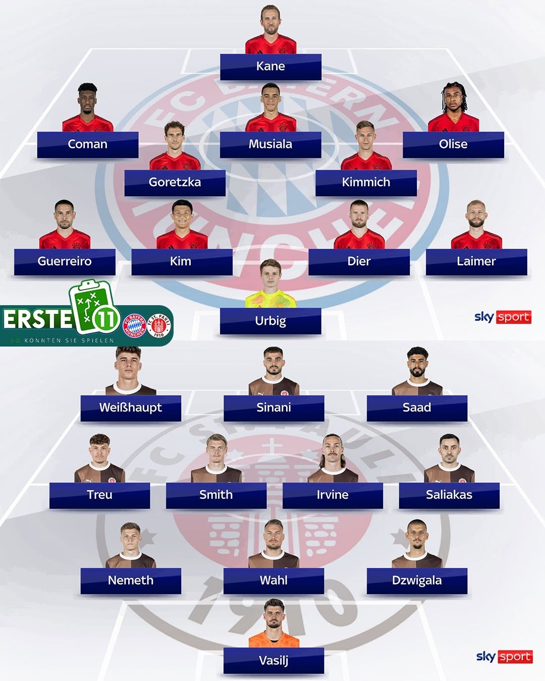 天空預測拜仁vs圣保利首發(fā):中衛金玟哉搭檔戴爾,格雷羅左后衛