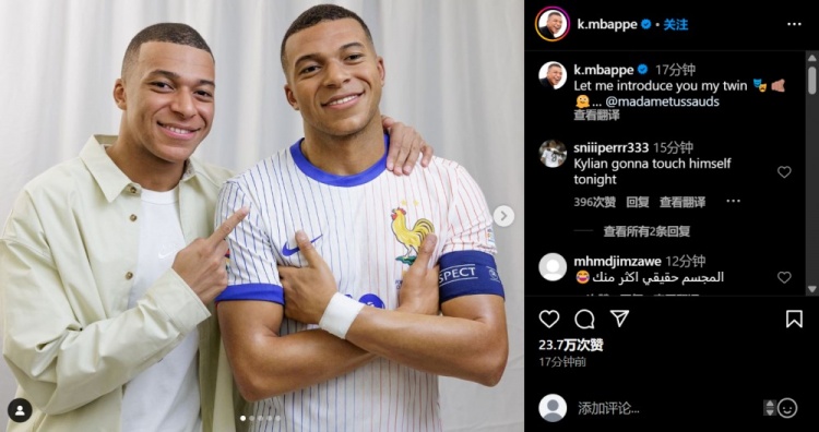 3月27日訊 姆巴佩最近在倫敦與杜莎夫人蠟像館的團隊一起制作自己的蠟像,他更新了個(gè)人社媒,曬出了與自己蠟像的合影。姆巴佩在社媒寫(xiě)道:讓我給你介紹一下我的雙胞胎????????????????…相關(guān):你能分清嗎????姆巴