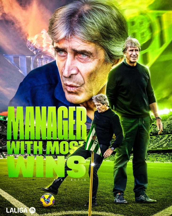 3月17日訊 在本輪西甲,貝蒂斯3-2逆轉擊敗萊加內斯。據統計,這場(chǎng)比賽也是佩萊格里尼執教貝蒂斯在西甲取得的第79場(chǎng)勝利,成為隊史在西甲勝場(chǎng)數最多的主帥。西甲官推也曬出海報為其紀念達成這一里程碑。佩萊