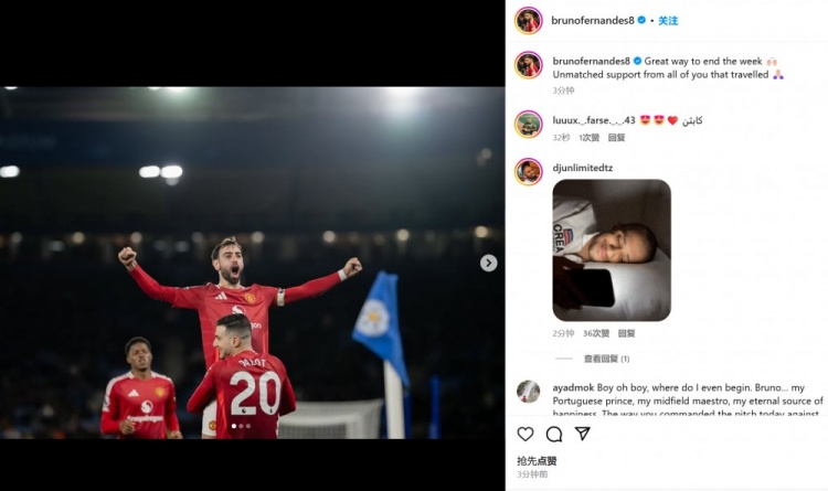 1球2助攻!曼聯(lián)官方:B費當選對陣萊斯特城隊內最佳球員