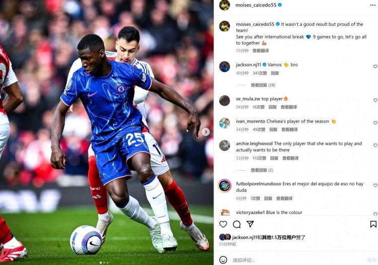 3月17日訊 在本輪英超,切爾西0-1不敵阿森納。凱塞多賽后在個(gè)人社媒曬出本場(chǎng)與馬丁內利對抗照片,配文寫(xiě)道:“這不是我們想要的結果,但是為球隊的表現感到自豪。我們在國際比賽日之后再見(jiàn)。賽季還有9場(chǎng)比賽