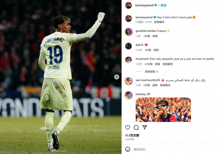 打破西甲4個(gè)半月進(jìn)球荒!亞馬爾社媒曬照慶祝:巴薩球迷們別擔心