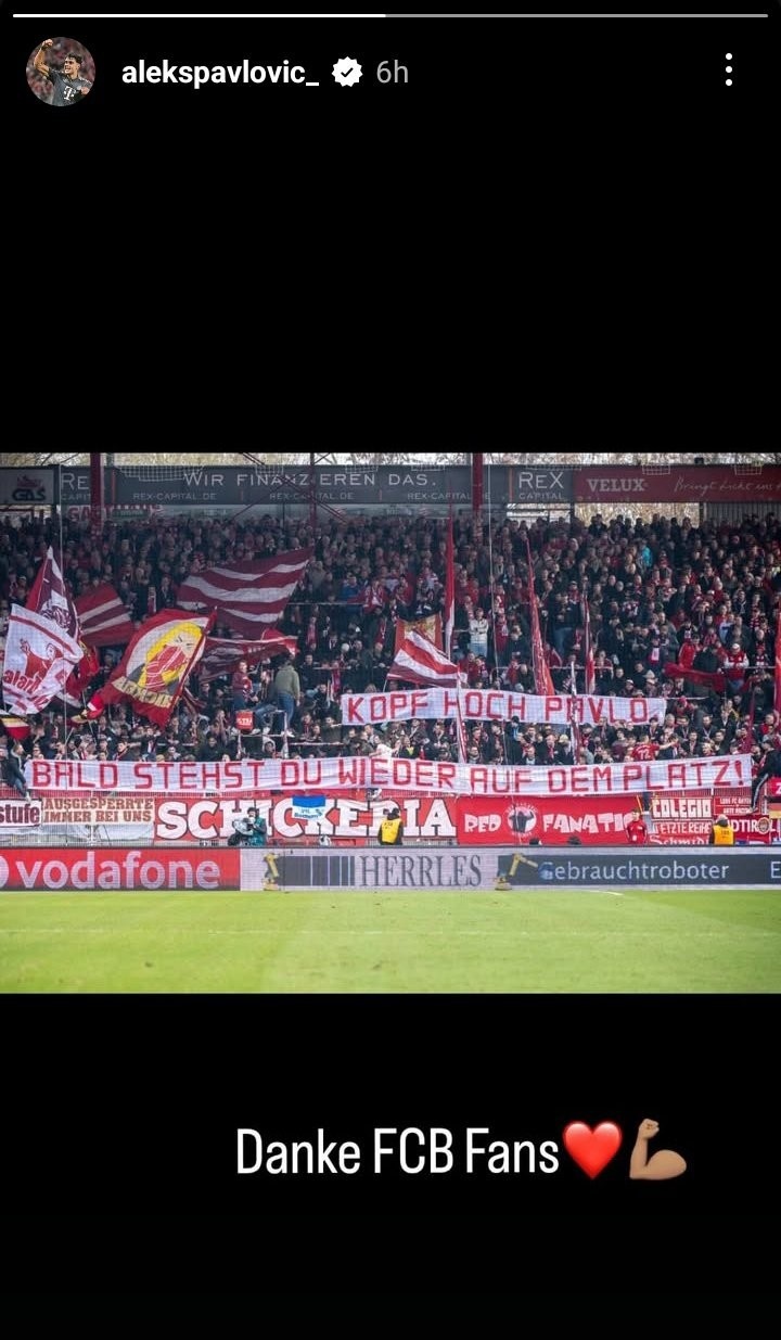 因感染預計共計缺陣1個(gè)月!球迷拉橫幅鼓勵,帕夫洛維奇社媒致謝