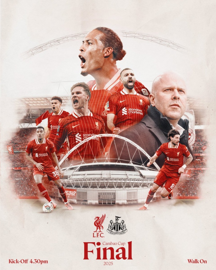 利物浦聯(lián)賽杯決賽海報:斯洛特、薩拉赫、范迪克等人出鏡