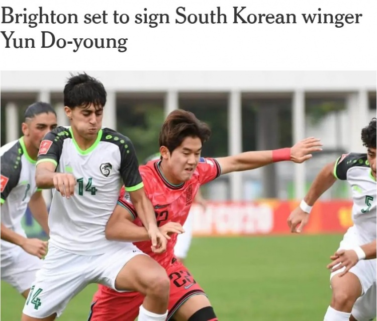 3月16日訊 The Athletic報道,布萊頓即將簽下18歲韓國邊鋒尹棹泳。尹棹泳將在周日飛抵英國,完成從大田市民到布萊頓的轉會(huì )手續。布萊頓已經(jīng)激活了尹棹泳合同中的解約金條款,并與球員談妥了個(gè)人協(xié)
