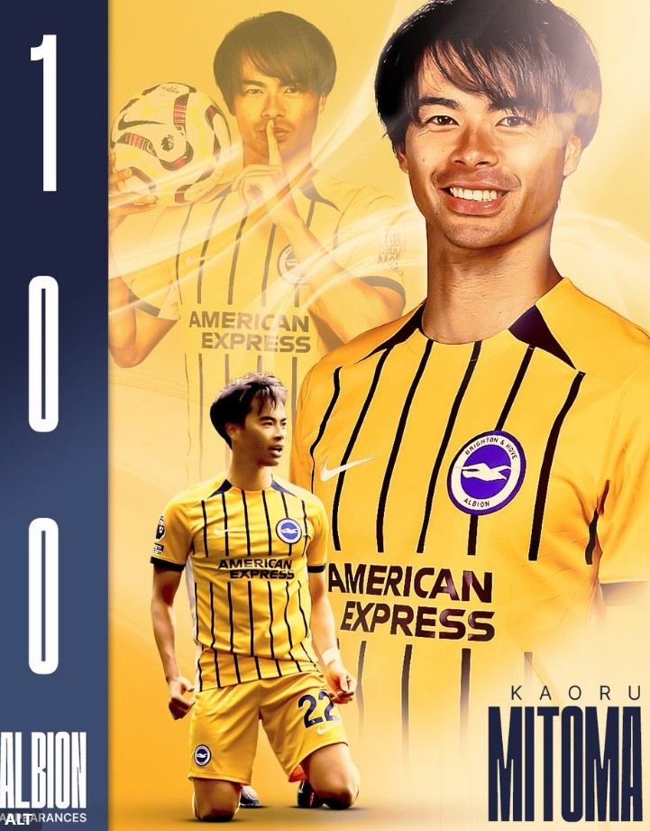 21球15助,布萊頓官方曬海報祝賀三笘薫達成100次出場(chǎng)里程碑