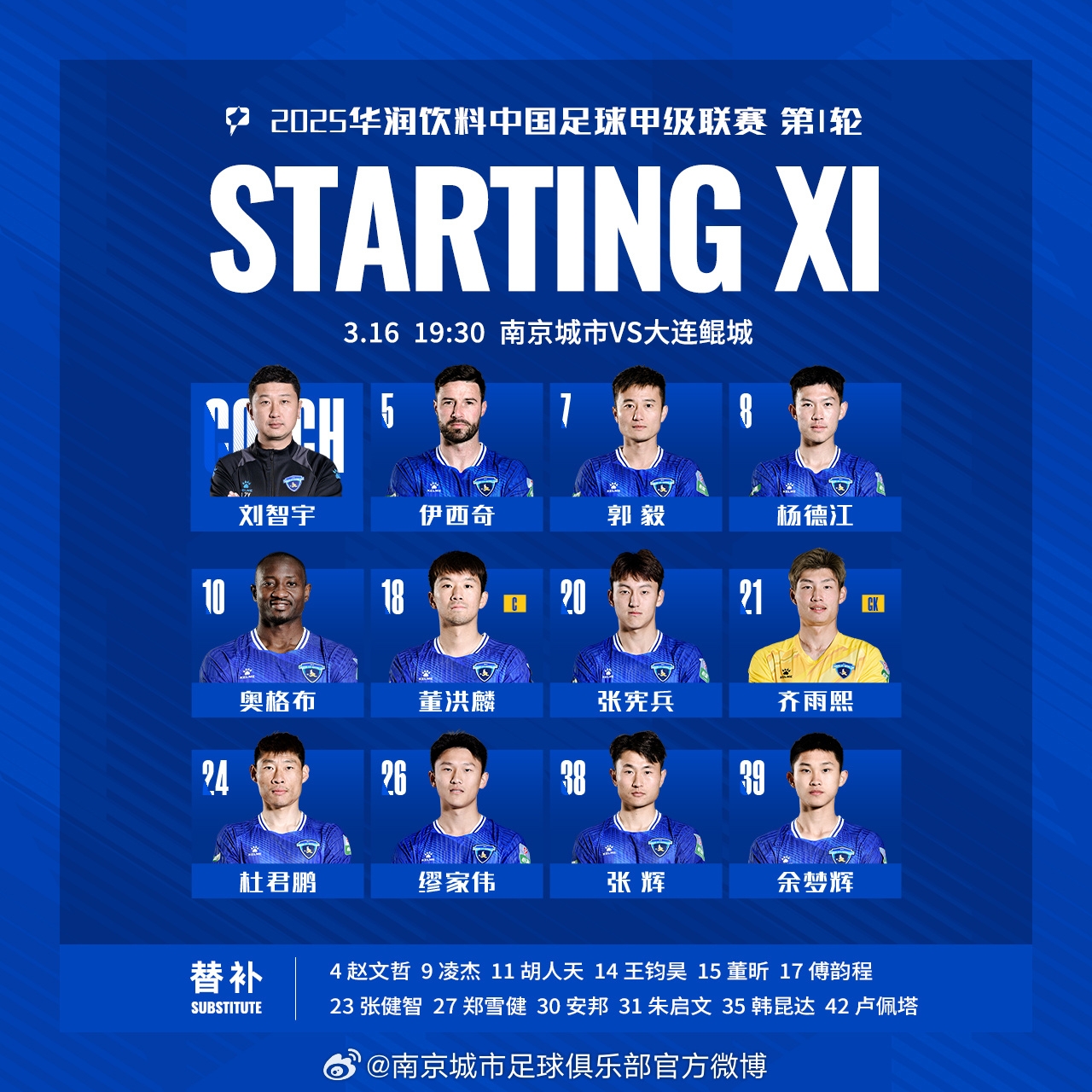 3月16日訊 北京時(shí)間今晚19:30,2025賽季中甲聯(lián)賽首輪南京城市主場(chǎng)迎戰大連鯤城。目前雙方首發(fā)名單已經(jīng)公布,具體如下:南京城市首發(fā):5-伊西奇、7-郭毅、8-楊德江(U21)、10-奧格布、18