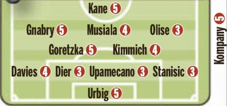 圖片報賽后評分:薩內2分,凱恩、孔帕尼、烏爾比希等5分并列最差