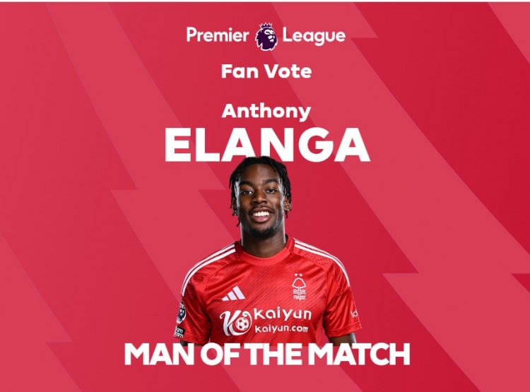 梅開(kāi)二度!官方:伊蘭加被票選為諾丁漢森林vs伊鎮全場(chǎng)最佳