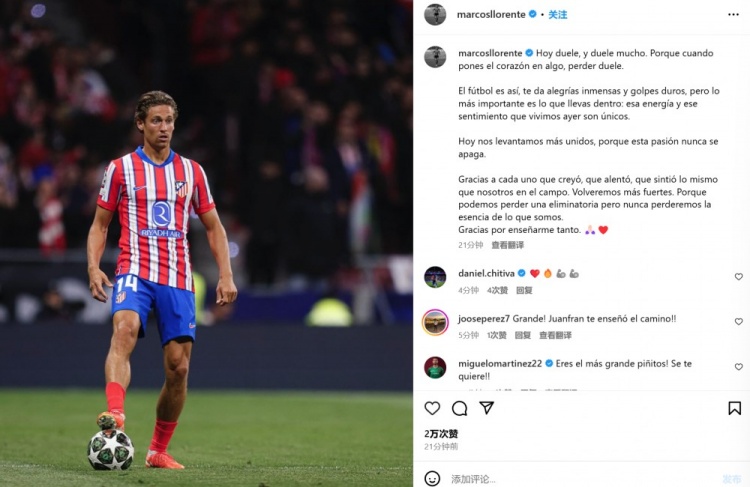 3月14日訊 馬競在本輪歐冠主場(chǎng)被皇馬點(diǎn)球淘汰,出自皇馬青訓的馬科斯-略倫特罰丟點(diǎn)球,他也在今日通過(guò)社媒發(fā)文。馬科斯-略倫特表示:“我今天很痛苦,而且是非常痛苦。因為當你全身心投入某項事業(yè)時(shí),失敗就是