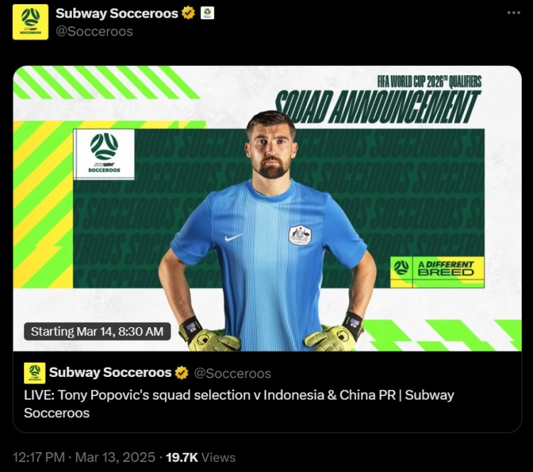 3月13日訊 官方消息,澳大利亞主帥波波維奇將在明日上午八點(diǎn)半公布最新一期國家隊名單。本月世預賽,澳大利亞將主場(chǎng)戰印尼,客場(chǎng)對陣中國隊。