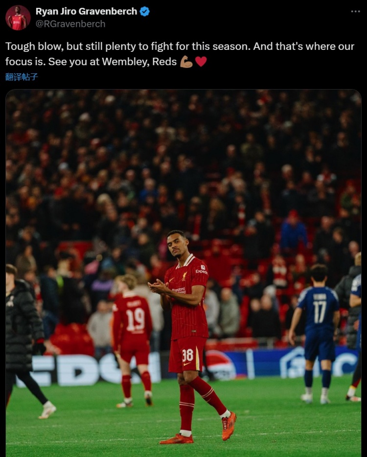 3月13日訊 利物浦在歐冠16強戰主場(chǎng)點(diǎn)球不敵巴黎,中場(chǎng)大將赫拉芬貝赫也在賽后通過(guò)社媒發(fā)表感想。赫拉芬貝赫曬出自己的比賽照,并表示:“沉重的打擊,但本賽季仍然有很多值得我們奮戰。我們也將專(zhuān)注于此。溫布