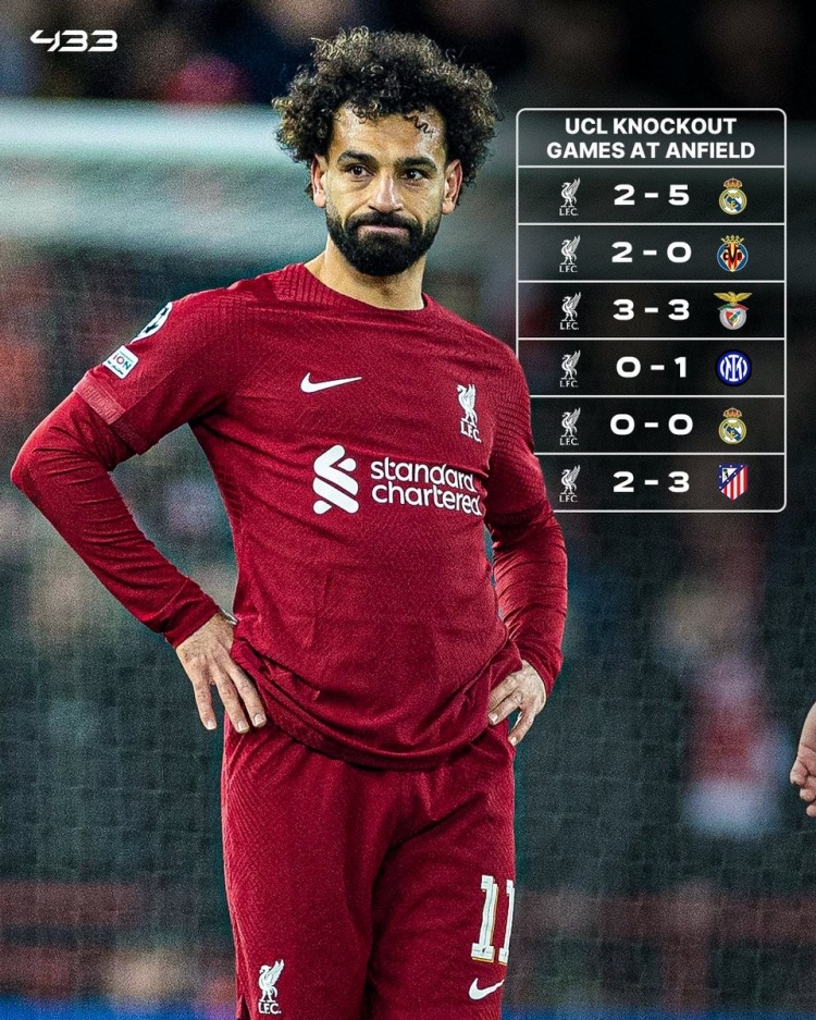 小心!利物浦最近6個(gè)主場(chǎng)的歐冠淘汰賽僅取得1勝2平3負