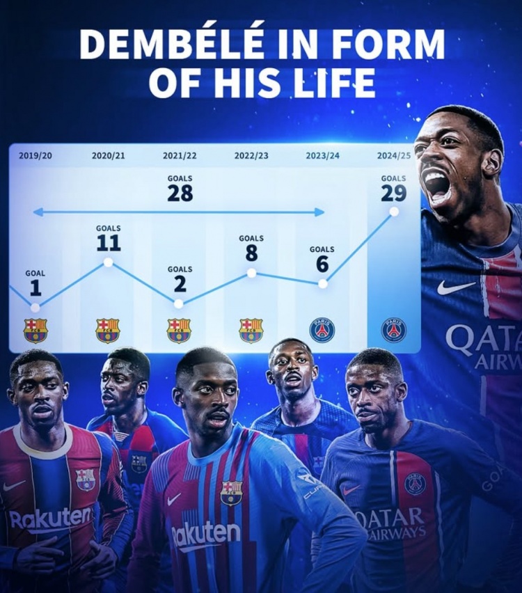 真-登球王!登貝萊本賽季狂轟29球,此前為巴薩&巴黎5賽季共28球