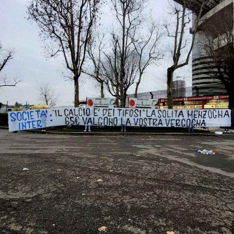 票價(jià)上漲&現場(chǎng)球迷顯著(zhù)減少,國米死忠拉橫幅:65歐票價(jià)太可恥!