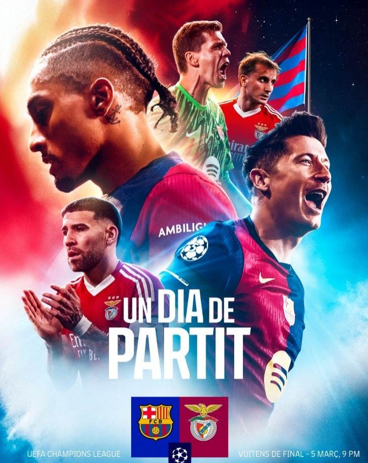 巴薩發(fā)布歐冠戰本菲卡海報:萊萬(wàn)、拉菲尼亞、什琴斯尼出鏡