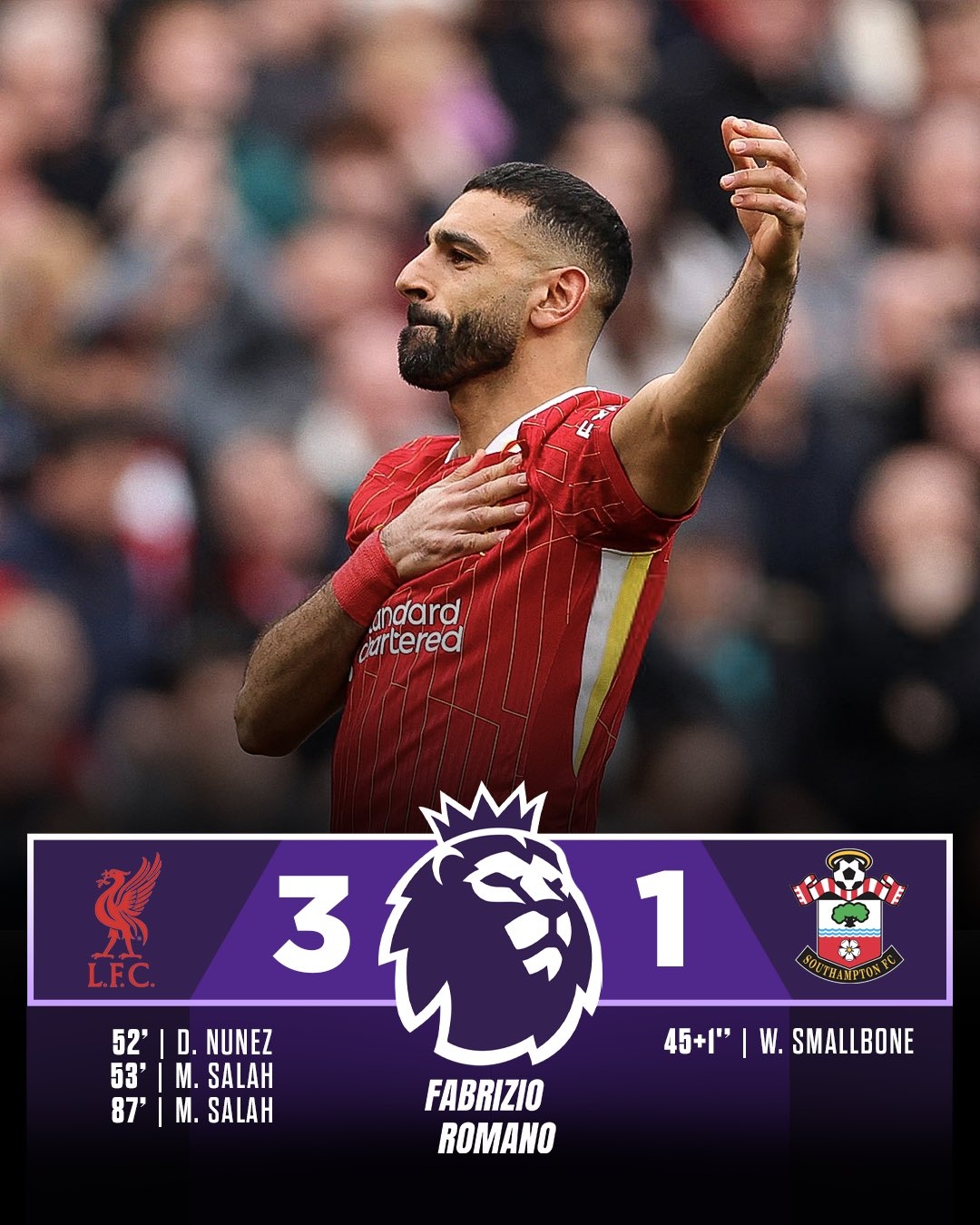 03月09日訊 英超第28輪,利物浦主場(chǎng)迎戰南安普頓,比賽第87分鐘,菅原由勢手球送點(diǎn),薩拉赫點(diǎn)射雙響,利物浦3-1領(lǐng)先鎖定勝局。