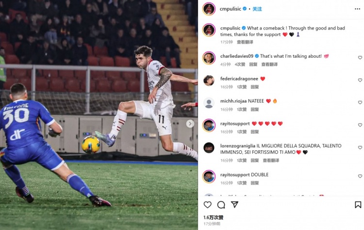 普利西奇社媒曬進(jìn)球照:多棒的逆轉!感謝球迷們始終不渝的支持