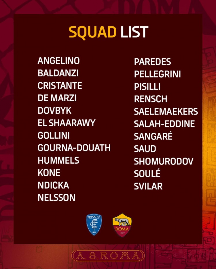 3月8日訊 北京時(shí)間3月10日1點(diǎn),意甲第28輪羅馬客戰恩波利,羅馬此役大名單公布。羅馬客戰恩波利大名單:門(mén)將:德馬茲、戈里尼、斯維拉爾后衛:安吉利諾、胡梅爾斯、恩迪卡、維克托-尼爾森、倫施、埃丁、布