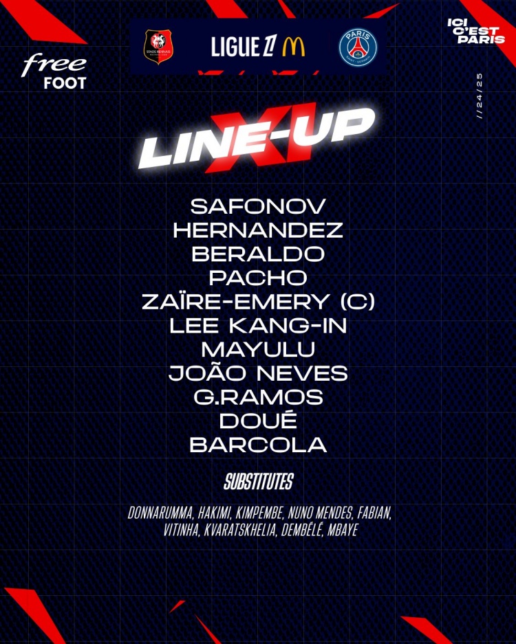 3月8日訊 北京時(shí)間3月9日00:00,法甲第25輪,巴黎客戰雷恩,賽前雙方首發(fā)公布,相較周中歐冠,巴黎做出8人輪換。巴黎首發(fā):39-薩福諾夫、21-盧卡斯、51-帕喬、35-貝拉爾多、24-馬尤盧、