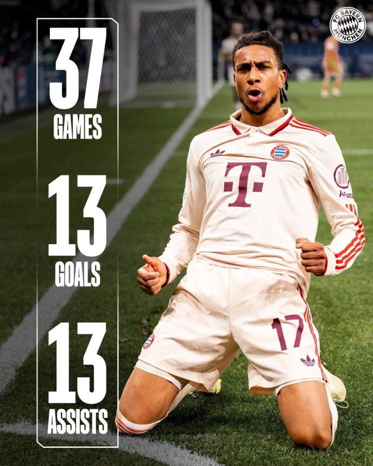 預訂拜仁賽季最佳引援?23歲奧利塞各項賽事37場(chǎng)13球13助攻