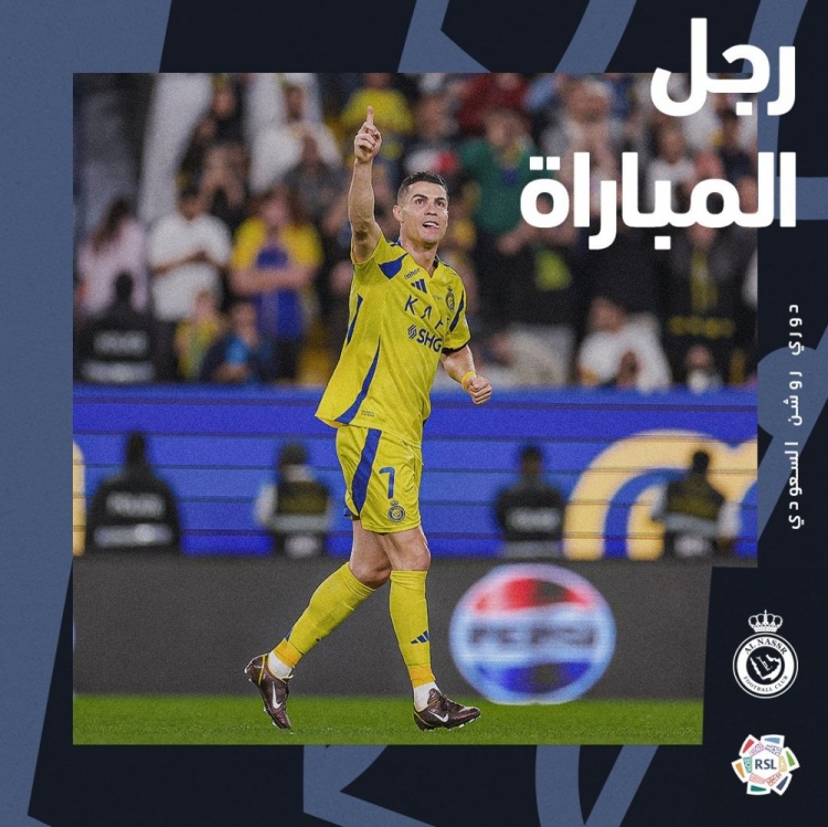 官方:C羅當選利雅得勝利2-2利雅得青年人全場(chǎng)最佳球員