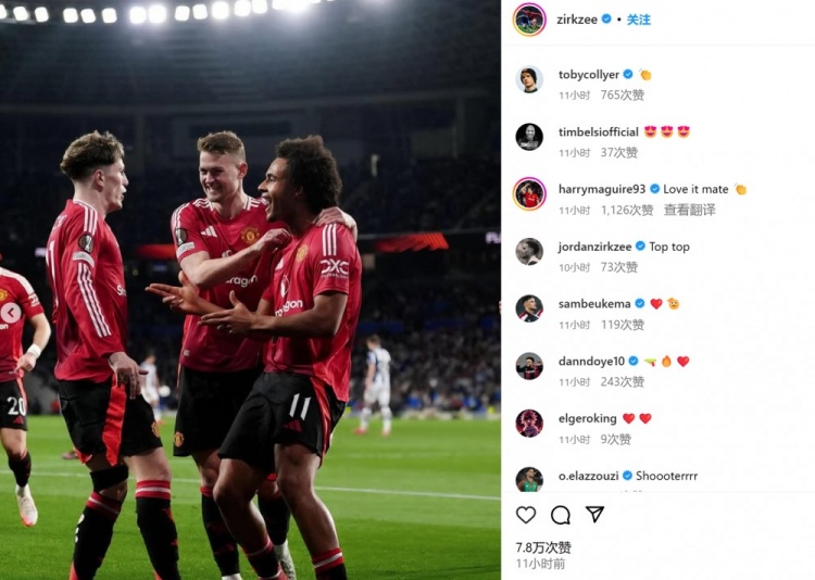 連線(xiàn)破門(mén)!加納喬&齊爾克澤社媒曬照紀念,馬奎爾評論區鼓勵