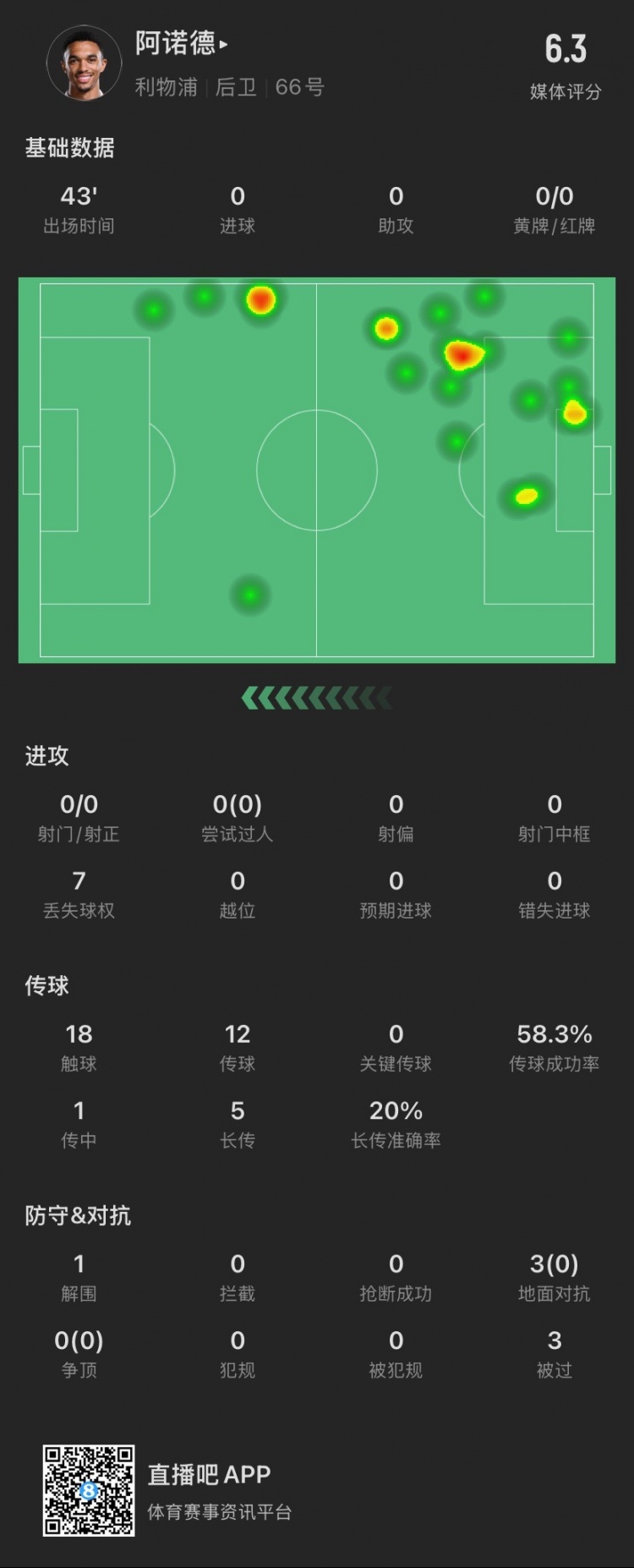 66號公路啟動(dòng)!阿諾德半場(chǎng):被過(guò)3次,3次對抗0成功,貢獻1解圍