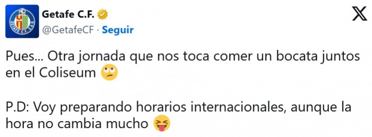 3月5日訊 據《馬卡報》報道,赫塔菲因對賽程不滿(mǎn)向西甲聯(lián)賽提出正式申訴,俱樂(lè )部認為他們過(guò)多14:00開(kāi)球的比賽影響了球迷的觀(guān)賽。赫塔菲將于本周日下午14:00對陣馬競,而他們下個(gè)主場(chǎng)對陣萊加內斯的比賽