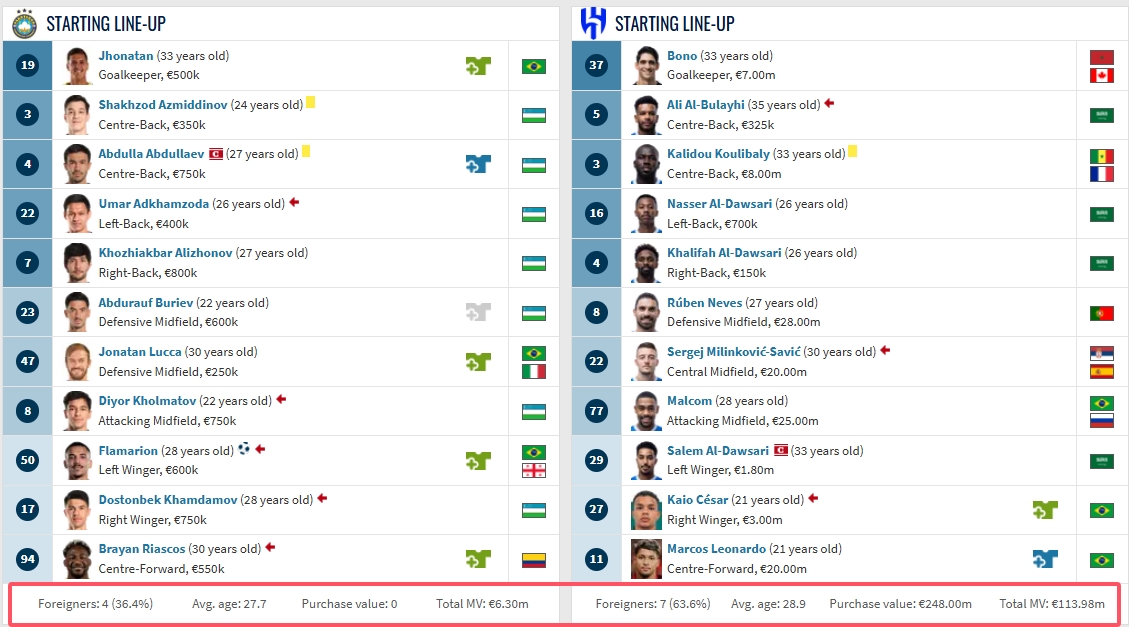新月亞冠爆冷輸塔什干棉農,首發(fā)身價(jià)是對手18倍,7外援vs4外援