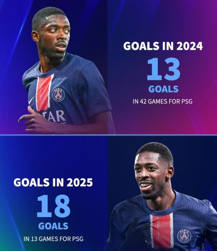 能否繼續破門(mén)?登貝萊去年為巴黎42場(chǎng)13球,今年13場(chǎng)已18球