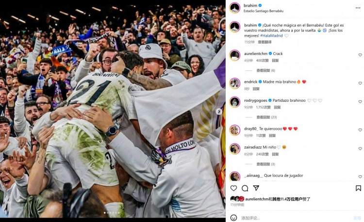 3月5日訊 在本輪歐冠,皇馬2-1擊敗馬競。本場(chǎng)比賽迪亞斯破門(mén),賽后他也在個(gè)人社媒曬出瘋狂慶祝進(jìn)球的照片,配文寫(xiě)道:“多么神奇的伯納烏夜晚,進(jìn)球獻給你們,皇馬球迷們,現在專(zhuān)注于下回合比賽。你們是最棒的