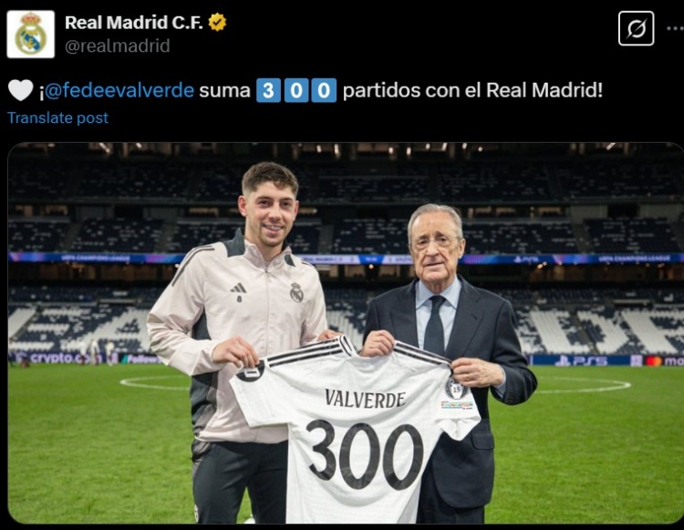 達成皇馬生涯300場(chǎng)里程碑,巴爾韋德獲紀念球衣&與弗洛倫蒂諾合影