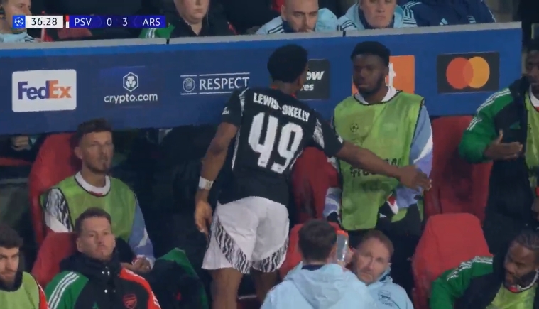 03月05日訊 歐冠1/8決賽首回合,埃因霍溫主場(chǎng)迎戰阿森納,比賽第35分鐘,阿森納換人調整,身背黃牌的斯凱利被卡拉菲奧里換下。