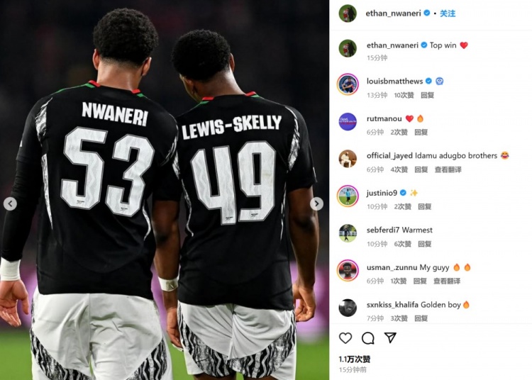 3月5日訊 阿森納在本輪歐冠客場(chǎng)7-1血洗埃因霍溫,兩位小將恩瓦內里和斯凱利表現出色。第21分鐘,阿森納禁區左側展開(kāi)攻勢,斯凱利低平球傳中被擋了一下,前點(diǎn)恩瓦內里直接左腳抽射破門(mén)。兩人也都在社媒曬出了