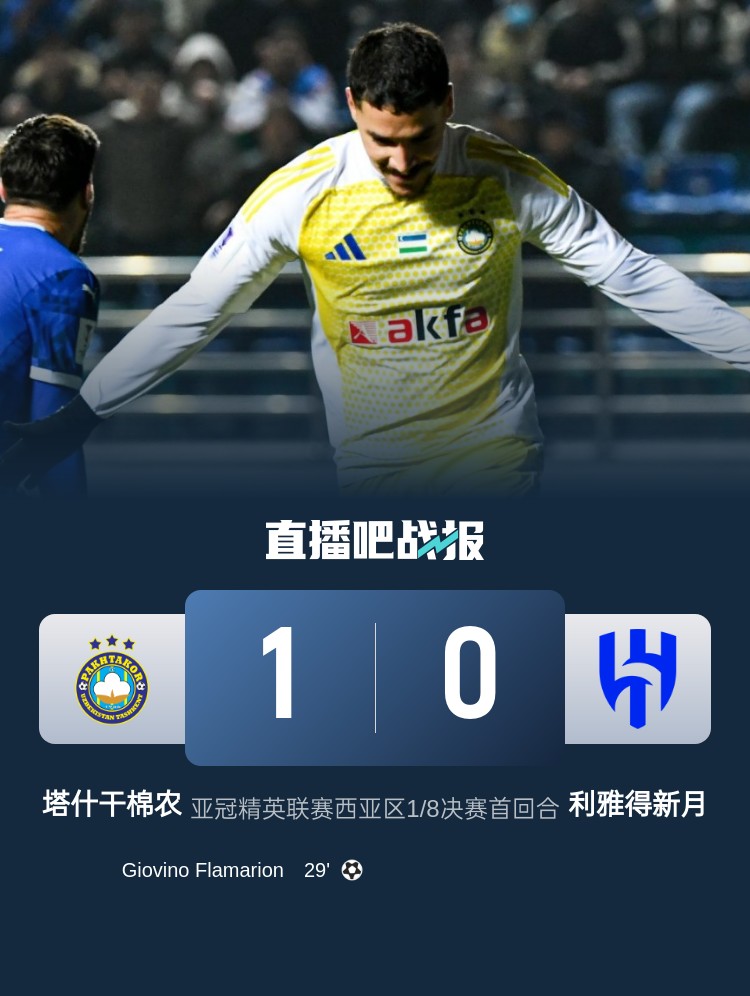 03月05日訊 亞冠精英聯(lián)賽西亞區1/8決賽首回合,利雅得新月0-1不敵塔什干棉農,客場(chǎng)告負。新月作為聯(lián)賽階段的巨無(wú)霸,8輪7勝1平未嘗敗績(jì),狂轟26球僅丟7球。本場(chǎng)對陣西亞區以第8名的墊底戰績(jì)晉級的