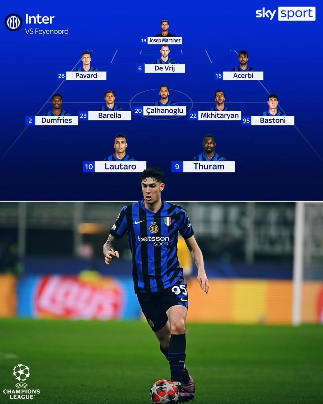 天空預測國米vs費耶諾德首發(fā):帕瓦爾出戰,巴斯托尼頂替迪馬爾科