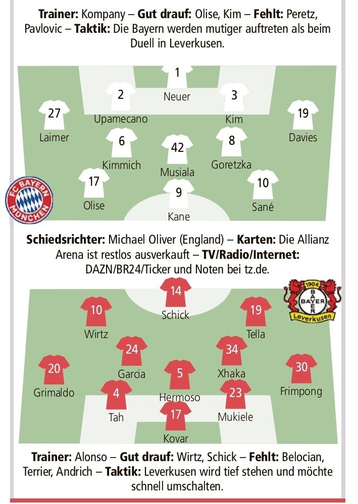 德媒預測拜仁vs藥廠(chǎng)首發(fā):凱恩PK???,薩內、基米希在列