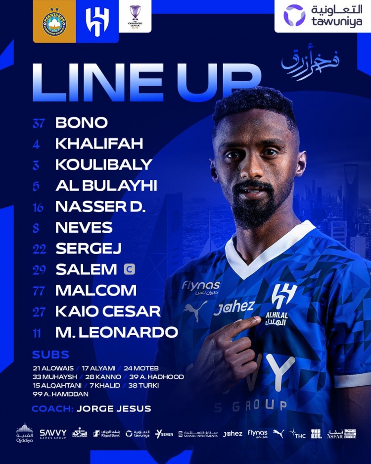 利雅得新月亞冠首發(fā):庫利巴利、魯本-內維斯、米林科維奇先發(fā)