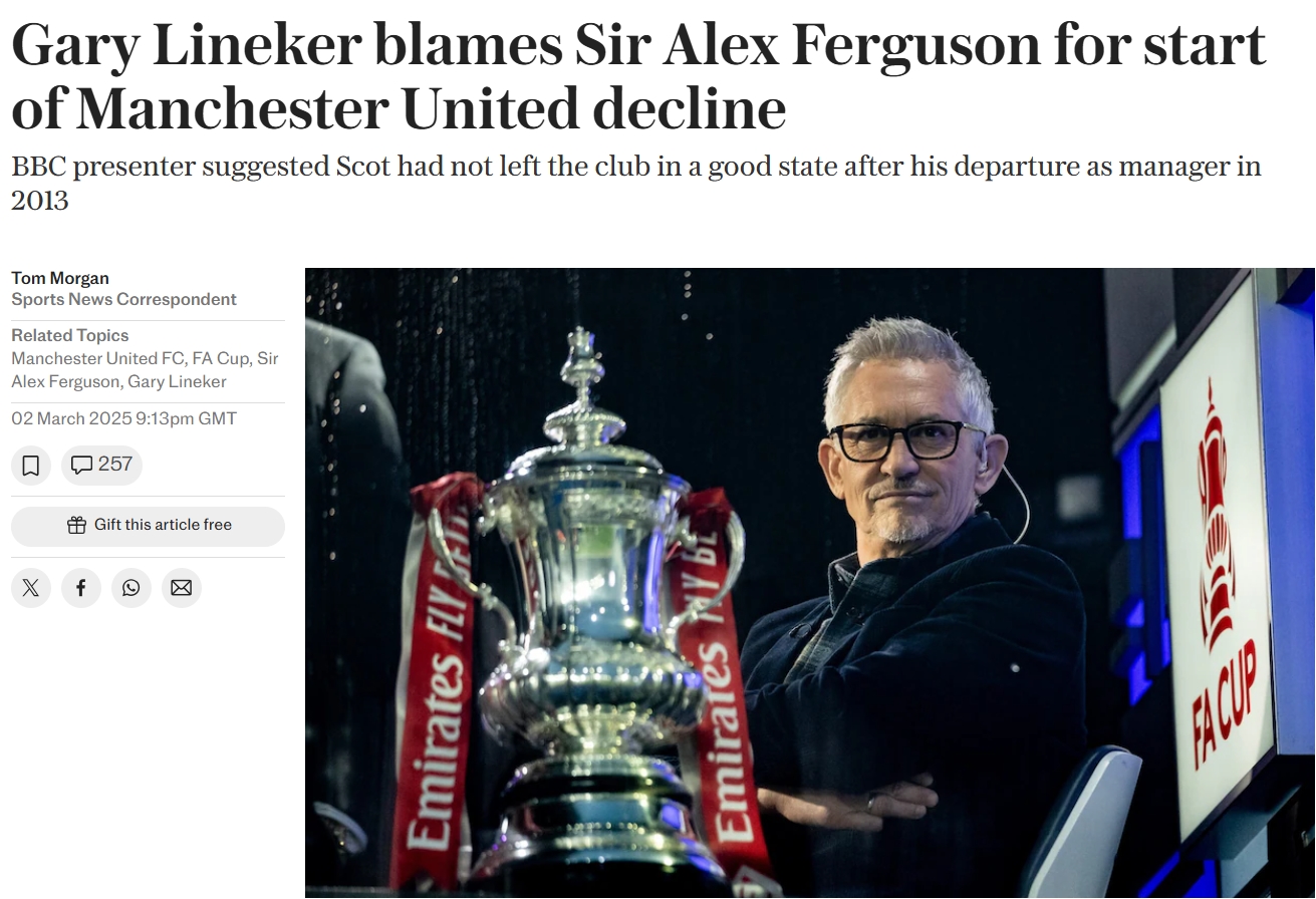 03月03日訊 英格蘭名宿、評論員萊因克爾在評述時(shí)表示,曼聯(lián)如今衰落的原因可以追溯到2013年弗格森的離任。萊因克爾表示:“你可以看看如今的利物浦,他們任命了斯洛特為新帥,證明了克洛普給俱樂(lè )部留下了很
