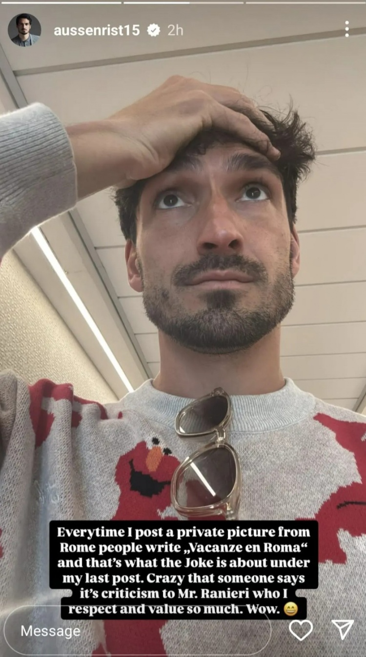 3月6日訊 此前,胡梅爾斯的社媒配文被網(wǎng)友認為是在諷刺主帥拉涅利。對此,胡梅爾斯做出了回應,表示自己很敬重拉涅利。昨天,胡梅爾斯曬出自己在羅馬游玩的照片,由于正值奧斯卡頒獎時(shí)間,他配文:奧斯卡最長(cháng)假期
