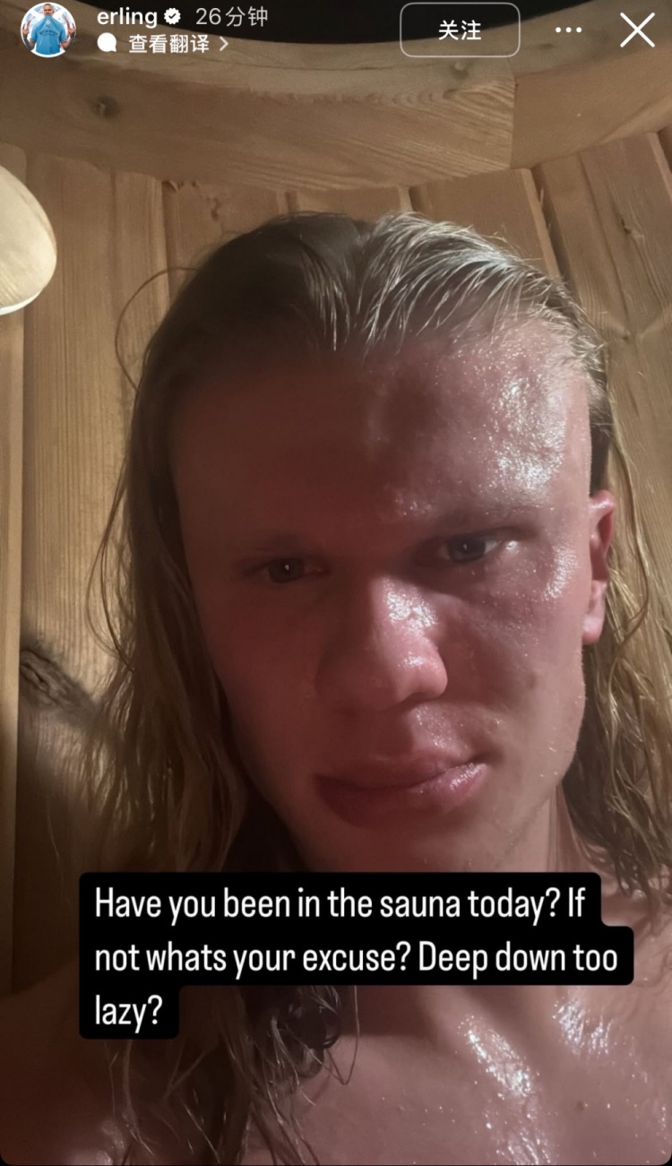 2月28日訊 曼城球星哈蘭德今日更新社媒,曬出自己蒸桑拿的照片。哈蘭德配文寫(xiě)道:“今天你蒸桑拿了嗎?如果沒(méi)有,那你的理由是什么?是因為內心深處的懶惰嗎?”根據過(guò)往報道,以及哈蘭德在過(guò)去接受采訪(fǎng)時(shí),都曾