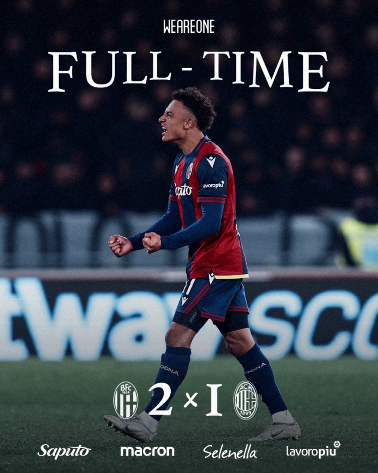 博洛尼亞意甲主場(chǎng)戰勝米蘭,自2002年3月以來(lái)首次