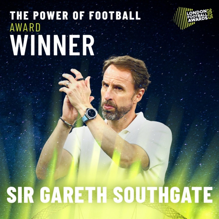 因在球場(chǎng)內外影響力,索斯蓋特獲得倫敦足球獎頒發(fā)的足球力量獎