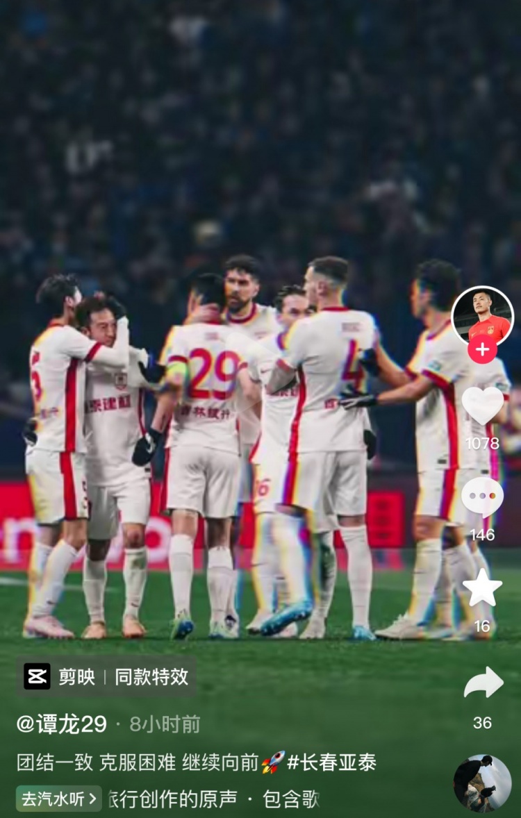 亞泰隊長(cháng)譚龍社媒鼓勵球隊:團結一致,克服困難,繼續向前