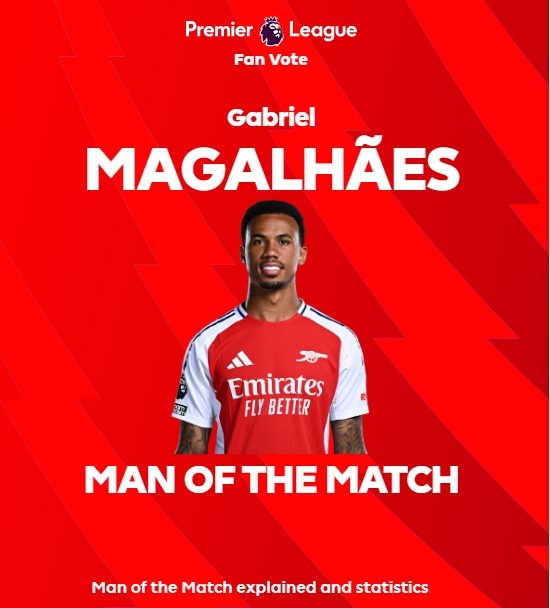 英超官方:加布里埃爾當選阿森納0-0諾丁漢森林全場(chǎng)最佳