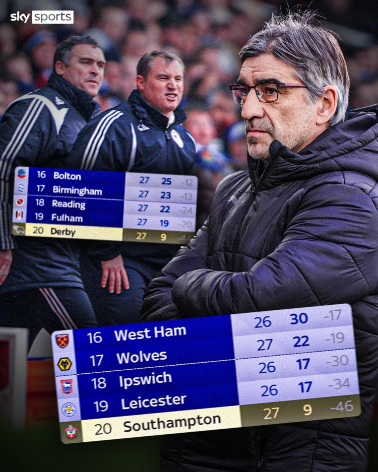 圣徒27輪后積分與07-08賽季德比郡相同 后者11分創(chuàng )英超最低積分